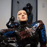 Explores the dark reality of exploitation of women through AI-generated deepfake pornography. I’ve created three life-sized sculptures of sexualized female forms using upcycled materials including plastic bottles, wood, and molded fiber, amongst others. These figures symbolize how AI distorts and commodifies women’s bodies without their consent. Statements are written in red (victims) and blue (exploiters) from the Victims and Exploiters perspectives–echoing the emotional chaos this causes. Displayed on insulation foam portraying a phone screen, the installation also includes audio in AI voices of the phrases displayed on the sculptures and a viewing station with colored filters. My goal is to raise awareness and advocate for legal protection against this growing digital threat.